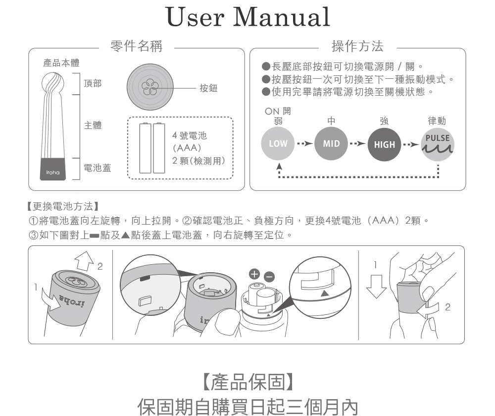 ▪單一操作模式開關及振動切換(三段強弱及律動模式)