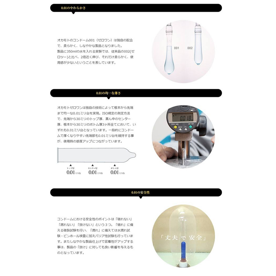 通過ISO國際檢定,整個安全套厚度均一為0.01毫米只有岡本0.01mm超薄安全套!