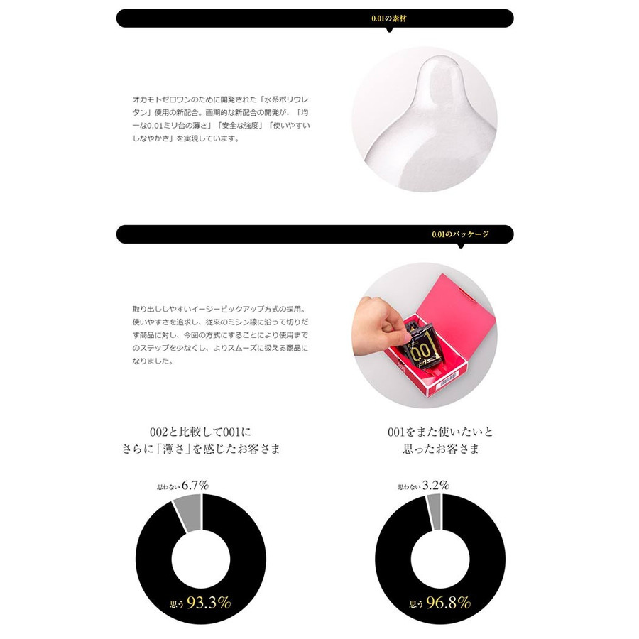 突破性超薄岡本0.01安全套!採用無臭聚氨酯製造,比一般乳膠安全套更強韌。
