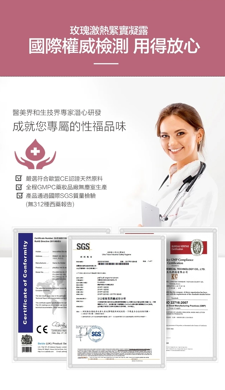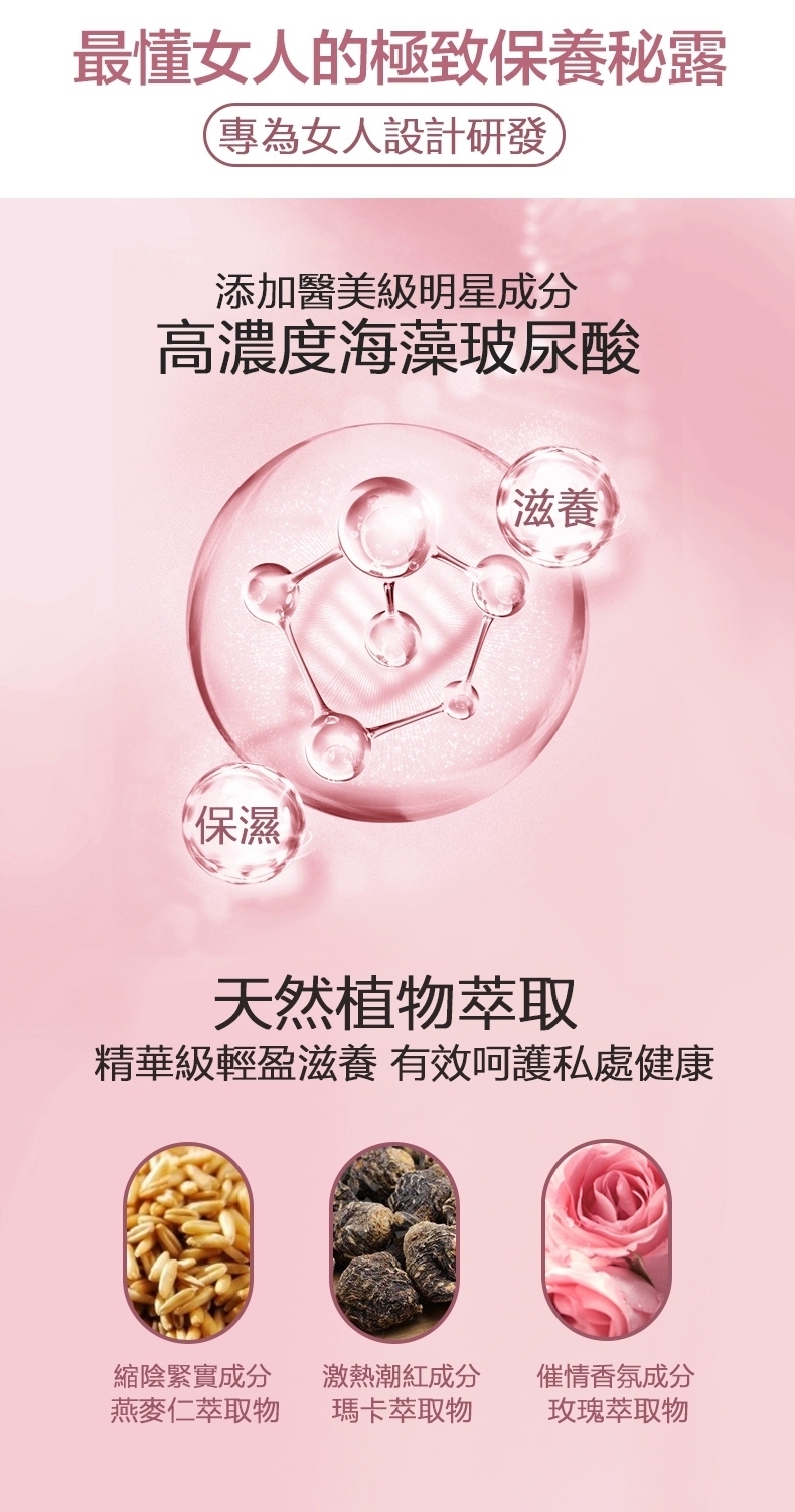物料/主要成份 : 瑪卡萃取物, 玫瑰萃取物, 燕麥仁萃取物, 葡聚多醣體, 純水, 海藻玻尿酸, 丙三醇, 檸檬酸, 檸檬酸鈉, 乳酸, 戊二醇, 小麥萃取物