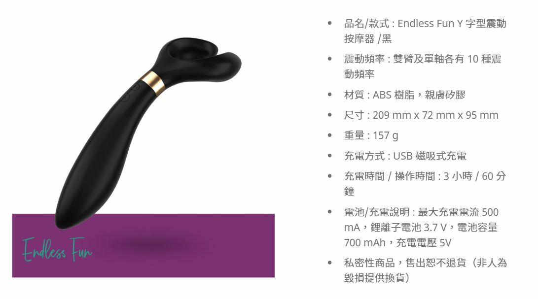 震動模式 : 雙臂及單軸各有 10 種震動頻率,共有 100 種震動組合