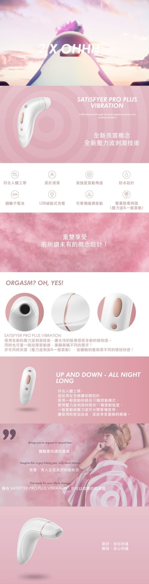 喜歡陰蒂吸吮同時懷念傳統震動刺激?SATISFYER PRO PLUS VIBRATION 同時滿足你!